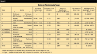 Thermocouple junctions alone do not generate voltages. The voltage or potential difference that develops at the output (open) end is a function of both the temperature of the junction T1 and the temperature of the open end T19. T19 must be held at a constant temperature, e.g., 0°C, to ensure that the open-end voltage changes in proportion to the temperature change in T1. In principle, a TC can be made from any two dissimilar metals such as nickel and iron. In practice, however, only a few TC types have become standard because their temperature coefficients are highly repeatable, they are rugged, and they output relatively large voltages. The most common thermocouple types are J, K, T, and E, followed by N28, N14, S, R, and B (see Figure 2). In theory, the junction temperature can be inferred from the Seebeck voltage by consulting standard tables. In practice, however, this voltage cannot be used directly because the thermocouple wire connection to the copper terminal at the measurement device itself constitutes a thermocouple junction (unless the TC lead is also copper) and outputs another EMF that must be compensated.